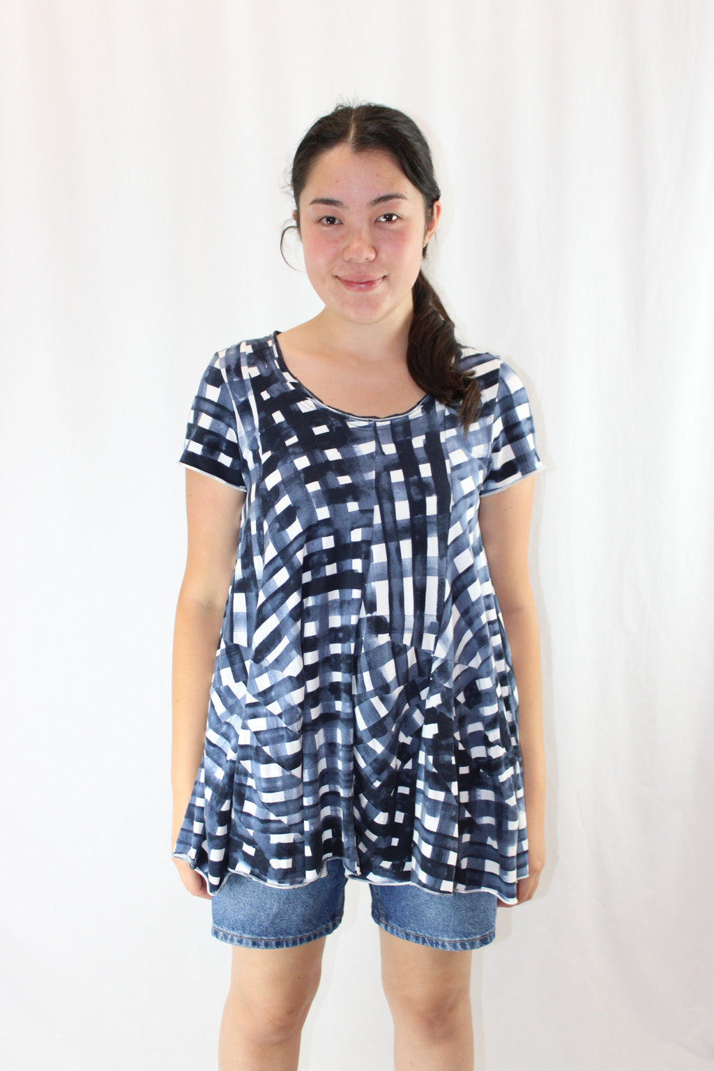 - Flared at waist
