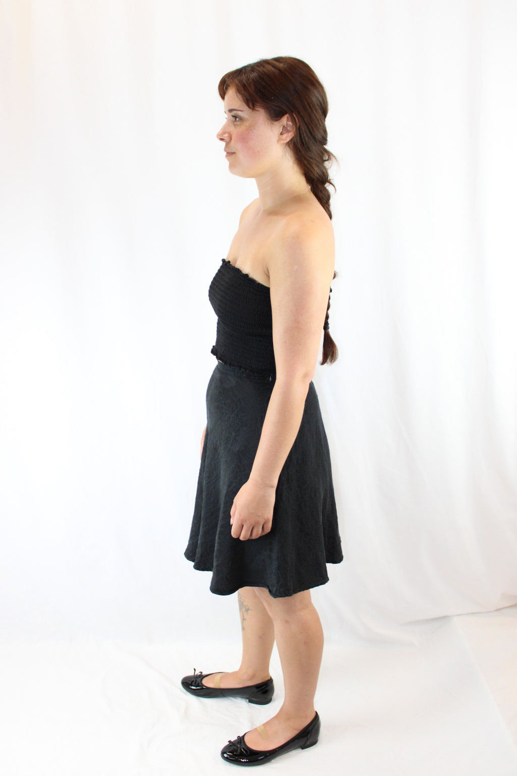 - Concealed side zipper closure