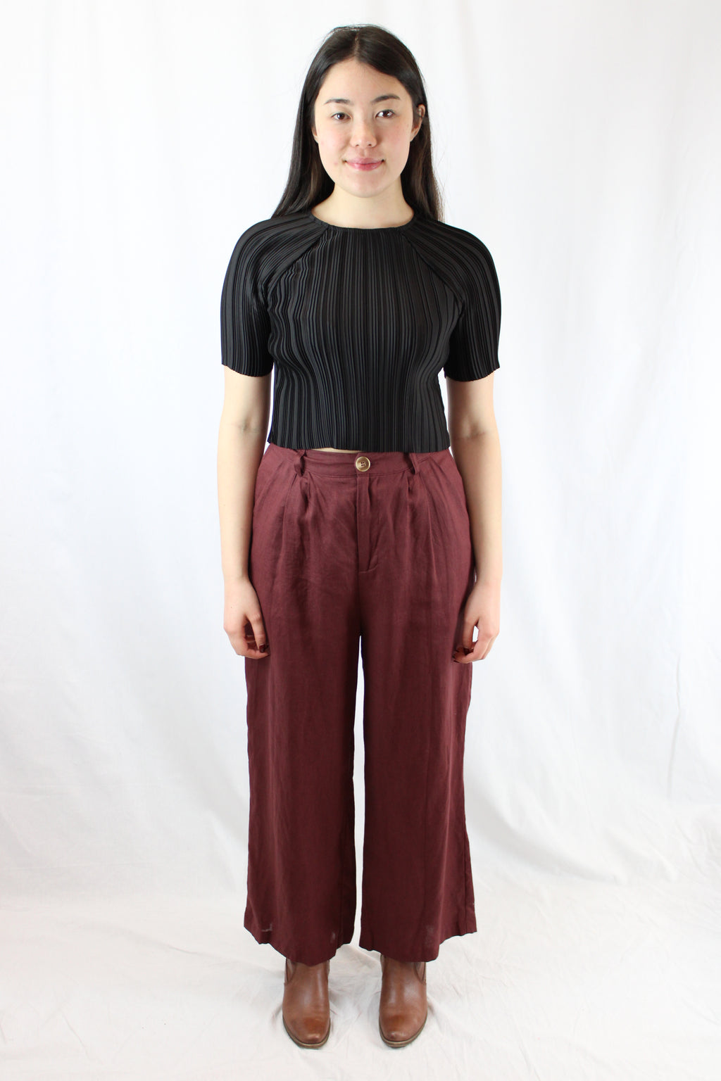 - Pleated front