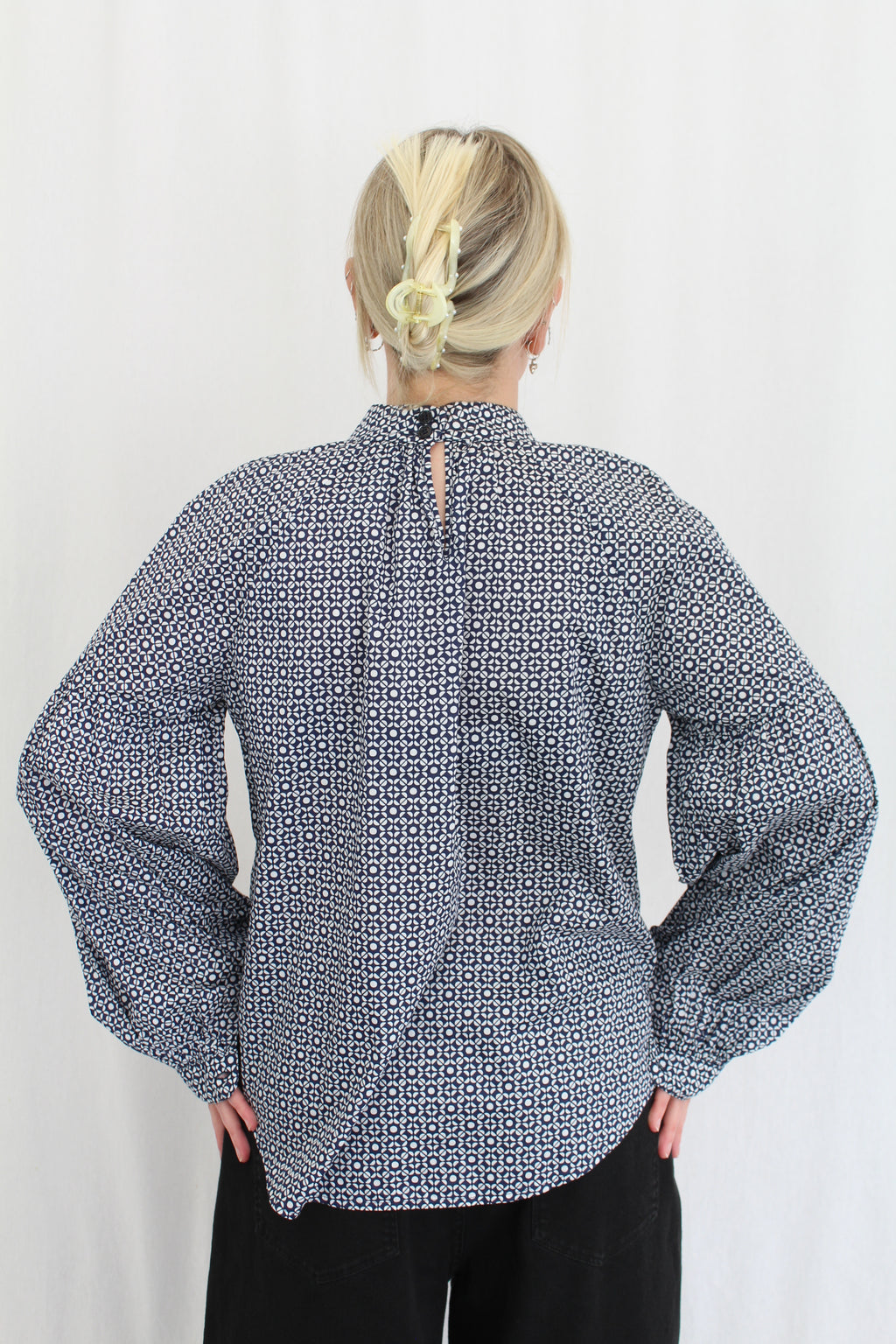 • Balloon sleeves with button arm cuffs