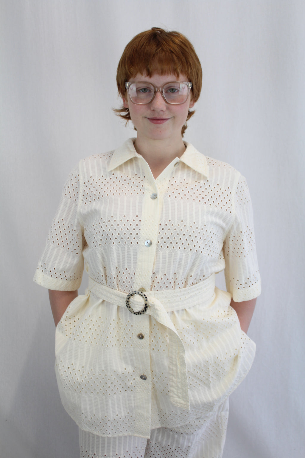 - Collared button up with belt