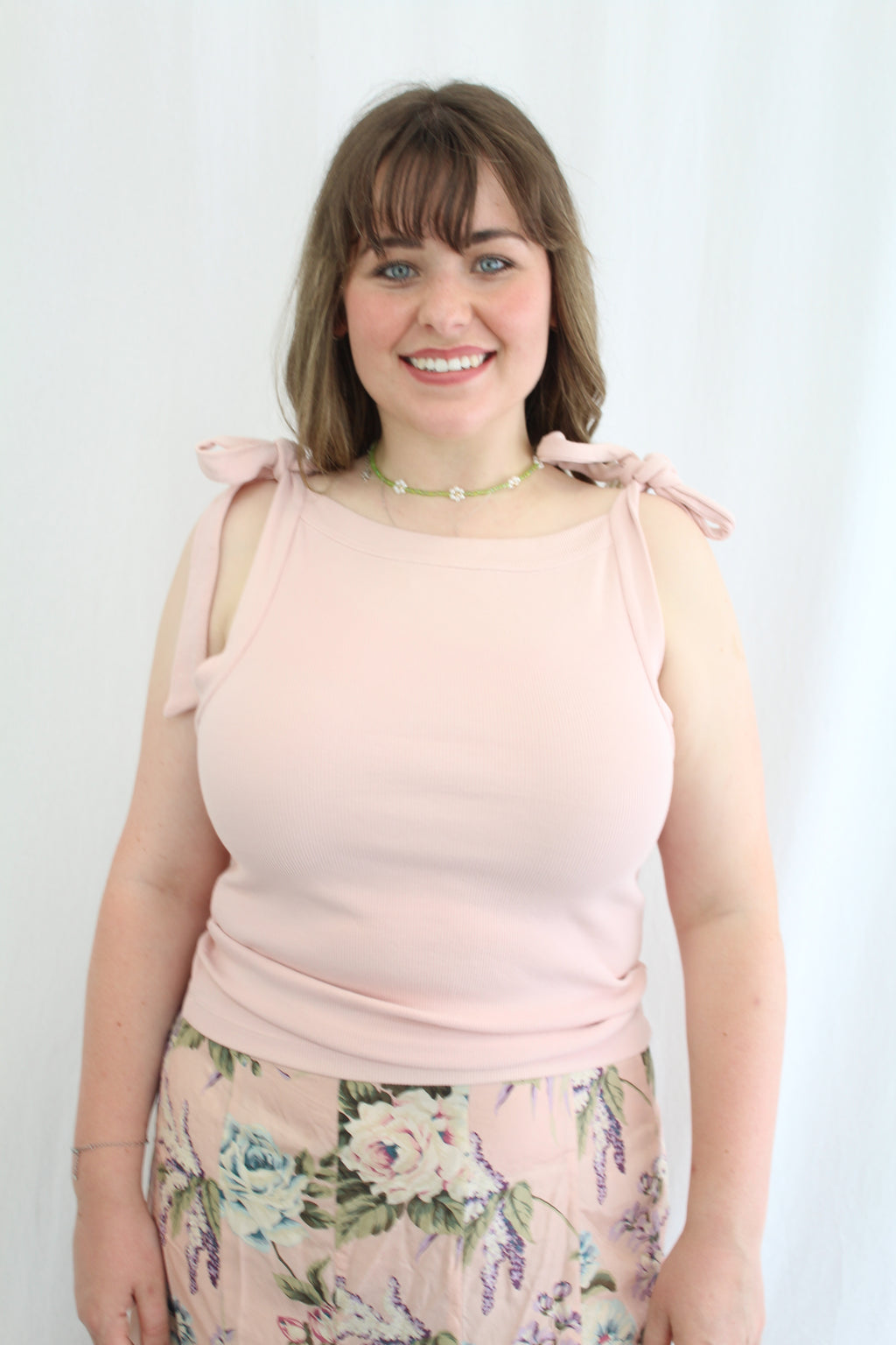 - Tied shoulder straps