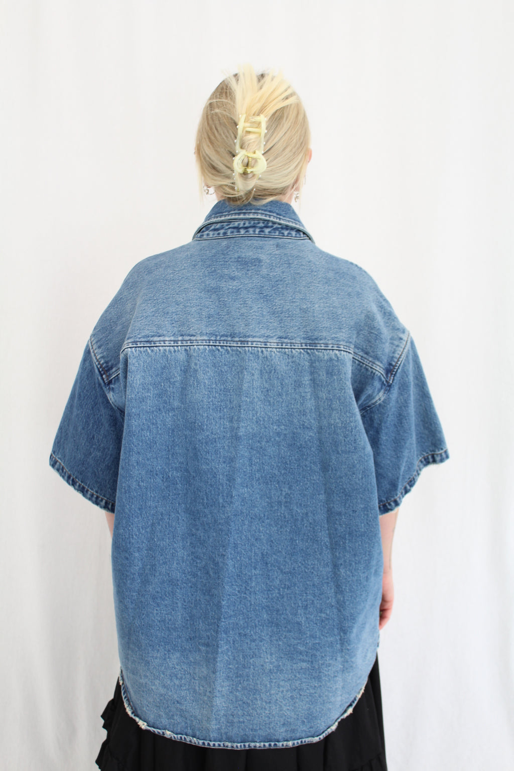 - Model usually wears a size 12, fits oversized