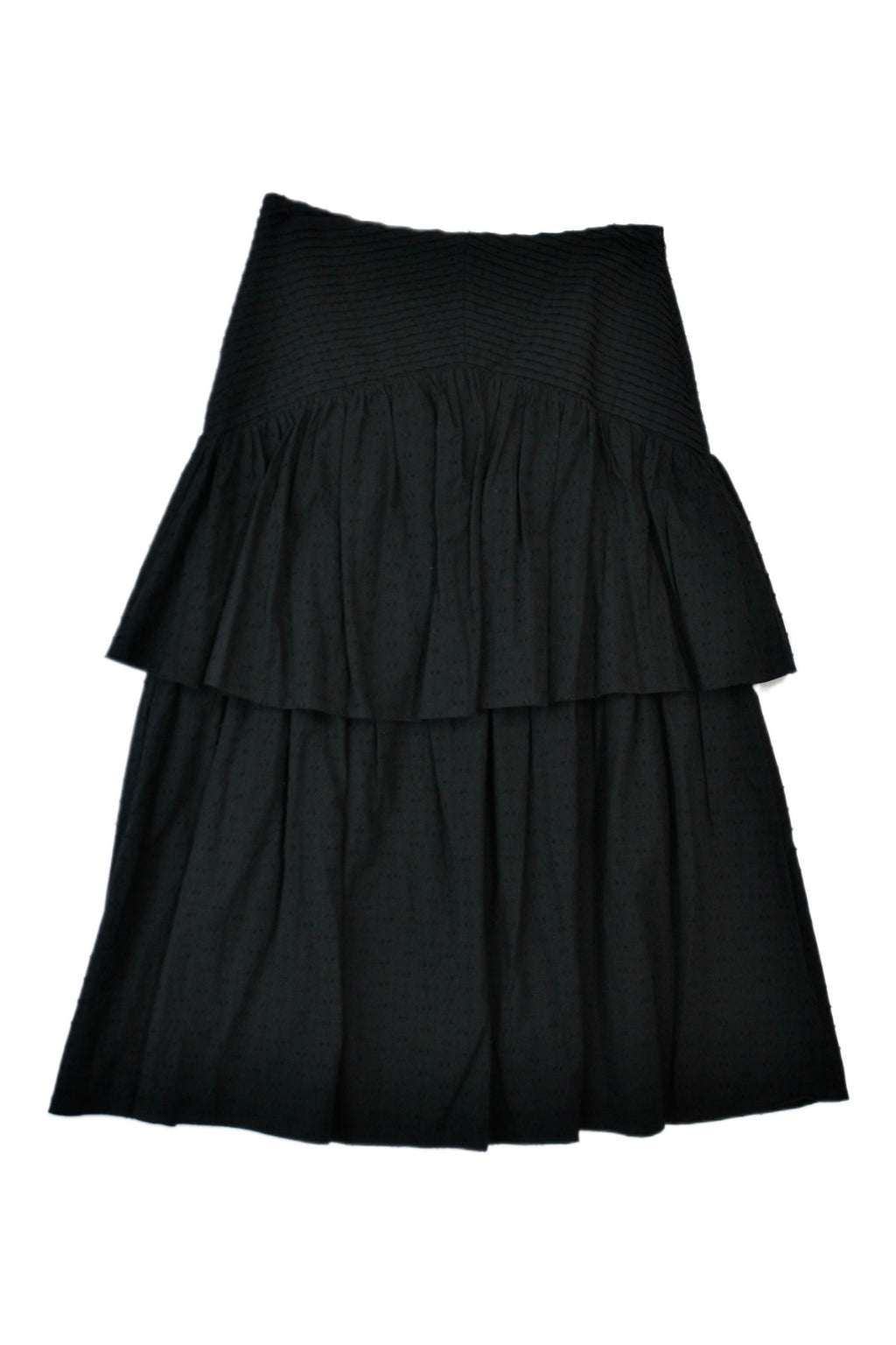 - Layered, tiered skirt